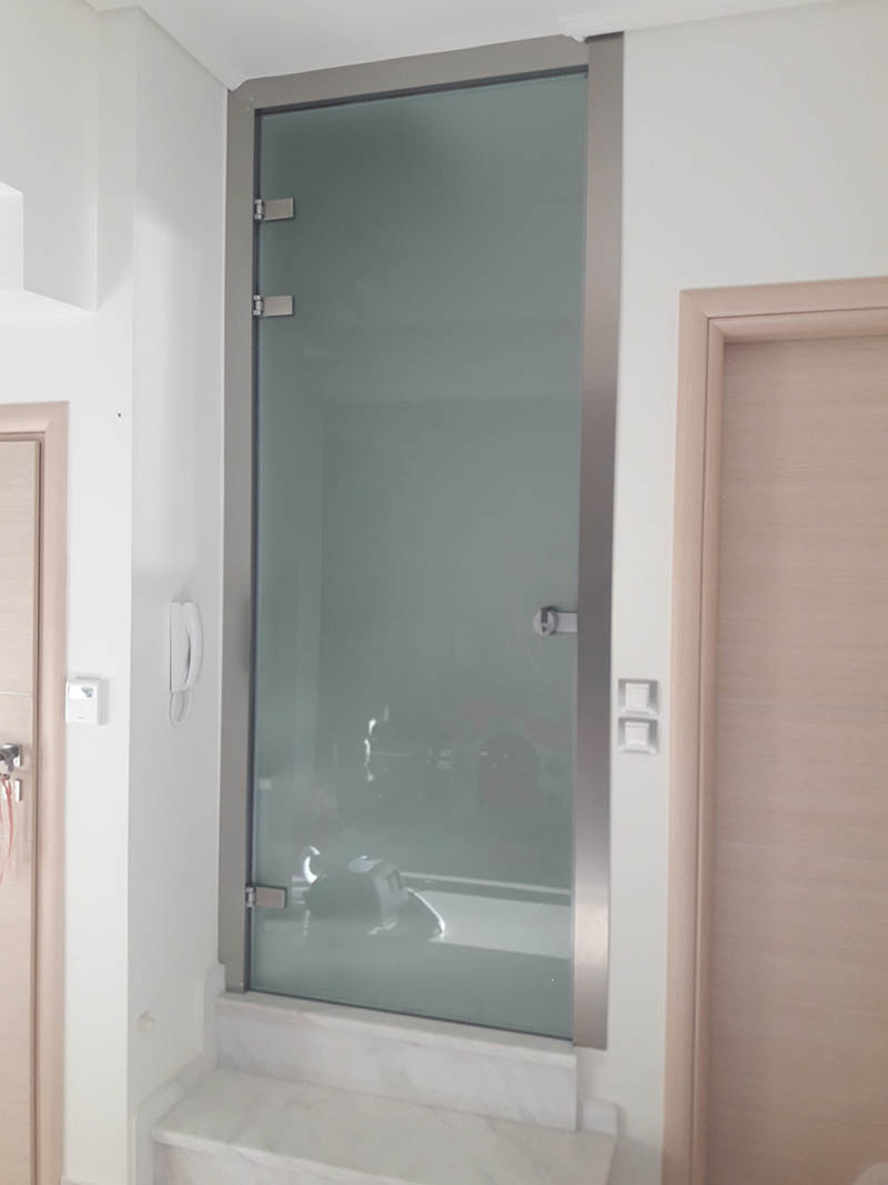 Πόρτες εσωτερικέςΓυάλινες και Αλουμινίου Γυάλινη πόρτα υψηλής αισθητικής Από ειδικό τζάμι και στοιχεία inox. ΠΟΡΤΕΣ ΑΛΟΥΜΙΝΙΟΥ / ΣΙΔΗΡΟΥ , ΕΞΩΤΕΡΙΚΕΣ ΠΟΡΤΕΣ ΘΩΡΑΚΙΣΜΕΝΕΣ